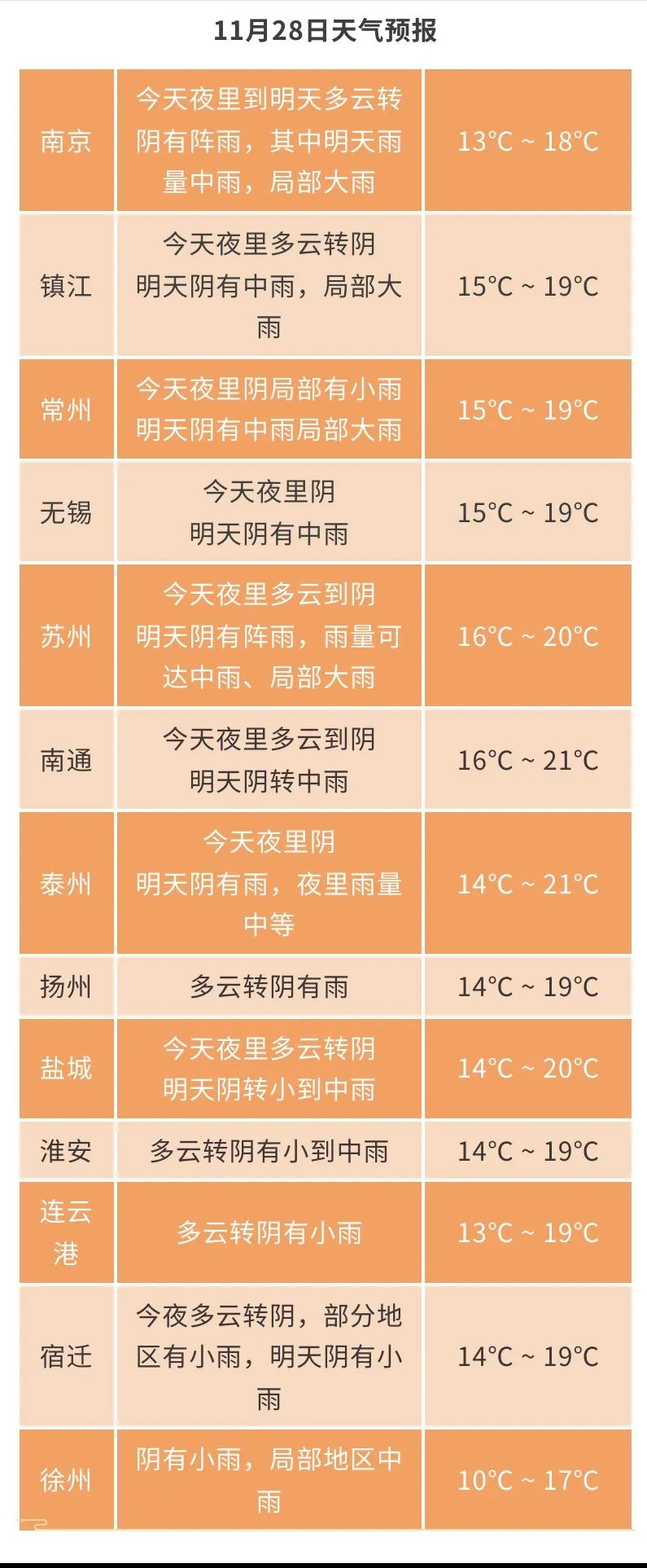未来几天江苏具体天气预报