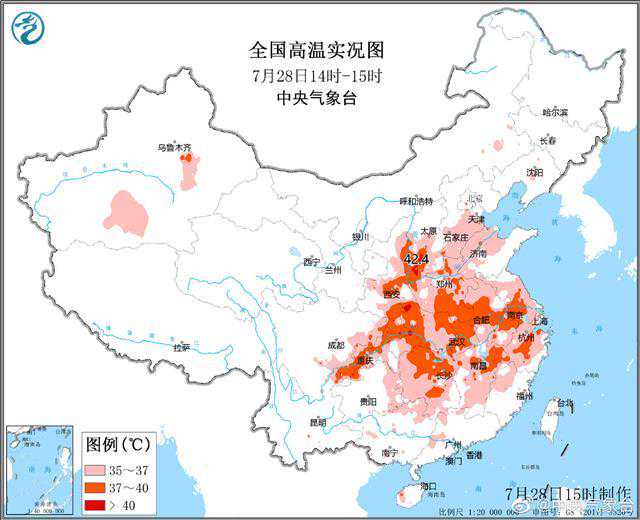 我国中东部出现今年最大范围的高温天气,