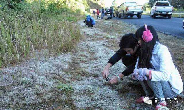 在宗通府,因他农山再次达到了今年最低气温,今日早晨气温仅1.0度下降4度。使得部分地面植被结霜,在42—47公里的道路上,一眼望去白茫茫的一片,因结冰与霜降的缘故显得格外美丽,让不少今天前往的游客在新年过后又一次欣赏到了清迈冬天的霜降美景,感受到了冬天的寒意。