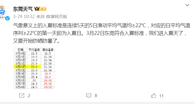往年东莞入夏时间