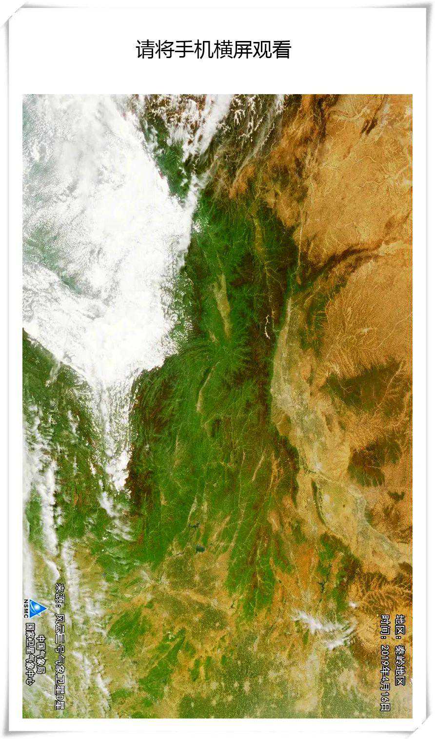 2019年4月16日风云三号气象卫星D星拍摄的秦岭之春。制作:张晔萍