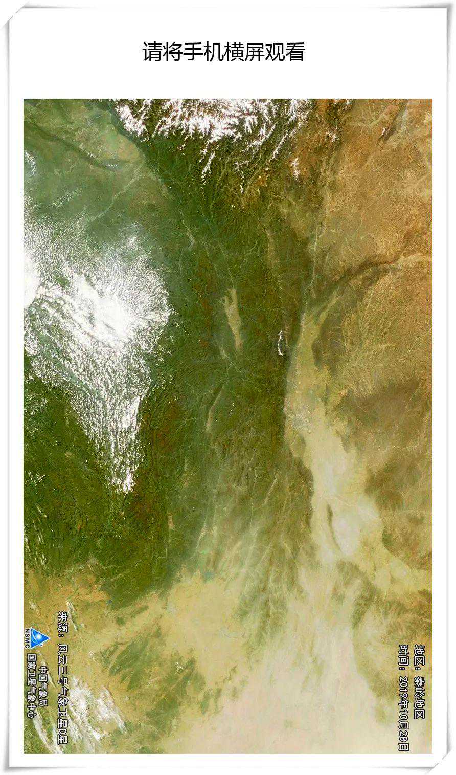 2019年10月28日风云三号气象卫星D星拍摄的秦岭之秋。制作:张晔萍