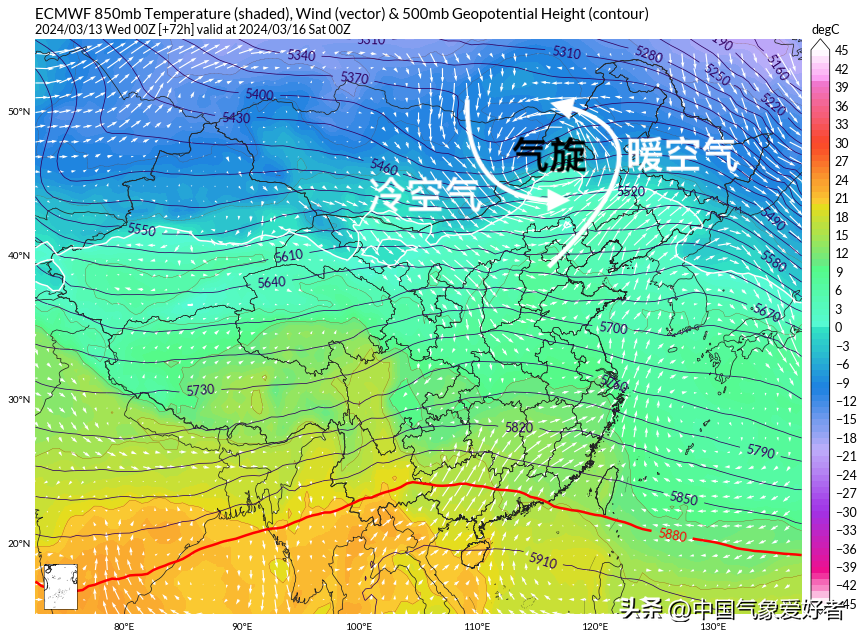 当然,在这个春日的序幕中,我们的主角——冷空气,似乎有些疲惫。它的舞步不再那么矫健有力,反而显得有些踉跄。因此,缺乏了冷空气的强力压制,最近暖湿气流频频反扑,和不那么强的冷空气纠缠,让中东部很多地方阴云密布。