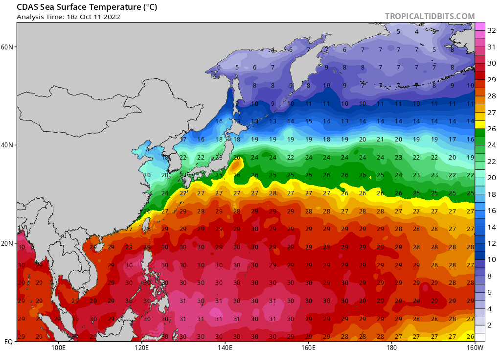 目前西北太平洋有两个热带扰动正在发展,西侧的热带扰动98W预计穿过菲律宾后在东北季风中消亡,大概率不能成为台风。东侧的热带扰动97W目前位置比较远,但其所处位置的海温较为适宜,未来它很有可能发展成为今年的第19号台风“桑卡”。