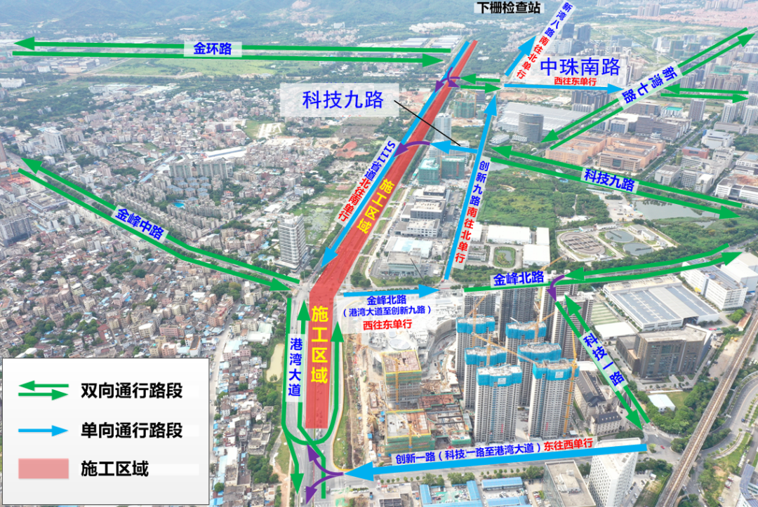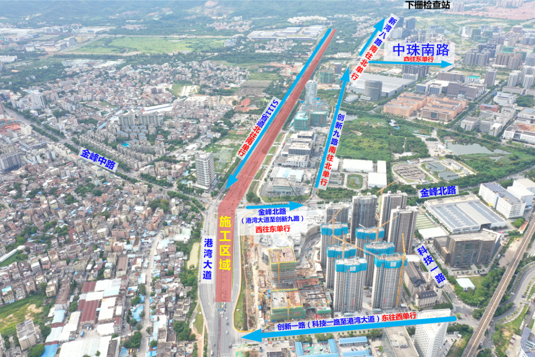 因工程施工需要,目前广澳高速珠海支线(京珠高速珠海段)金峰路路口至下栅检查站段已全封闭,周边交通组织也有重大调整。具体如下: