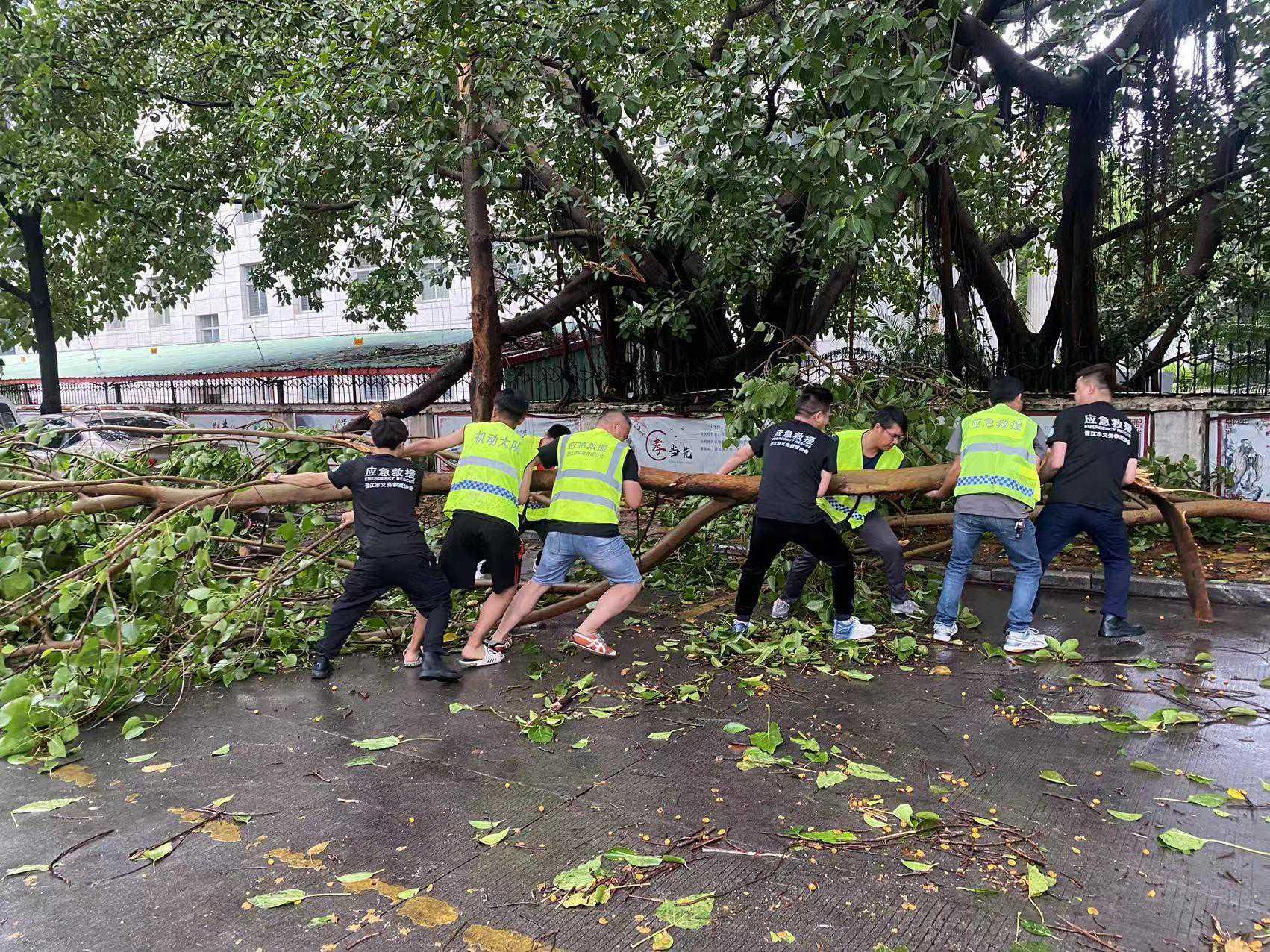 “我们队员巡查发现后,立即组织人员前往处理。”林成志称,台风过境对晋江的城市绿化造成严重影响,狂风将主干道两旁的绿植吹倒在地,影响道路畅通。他组织了多位队员,佩戴好安全头盔,携带清理工具,将凌乱的路面恢复为畅通的主干道。