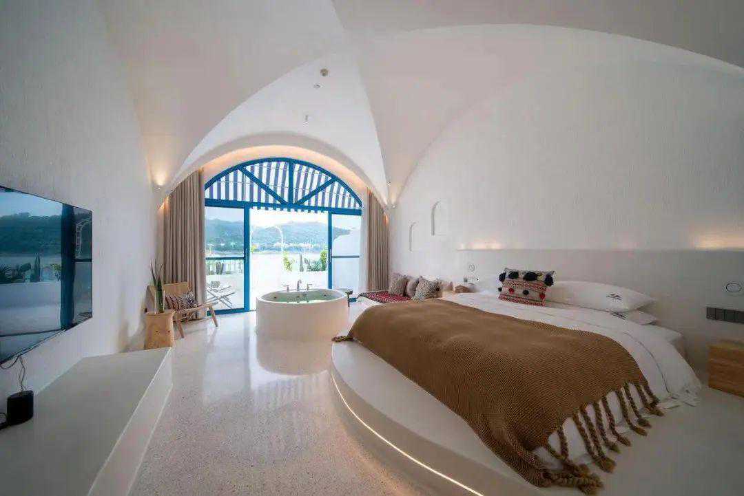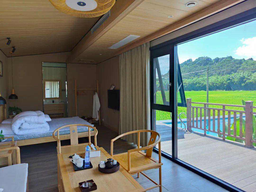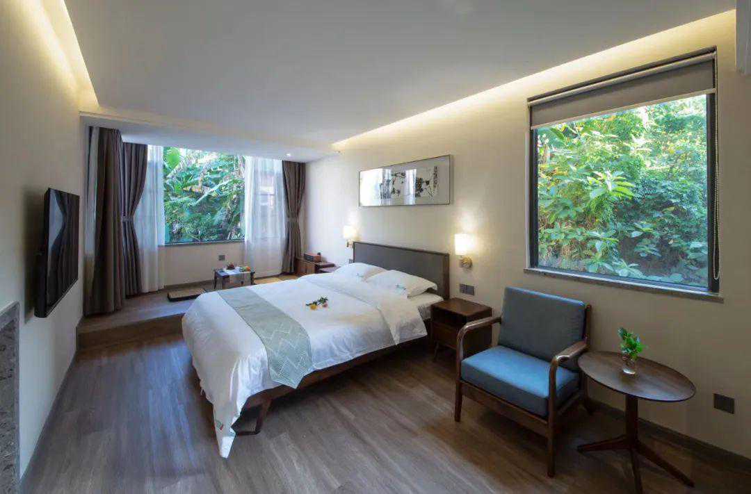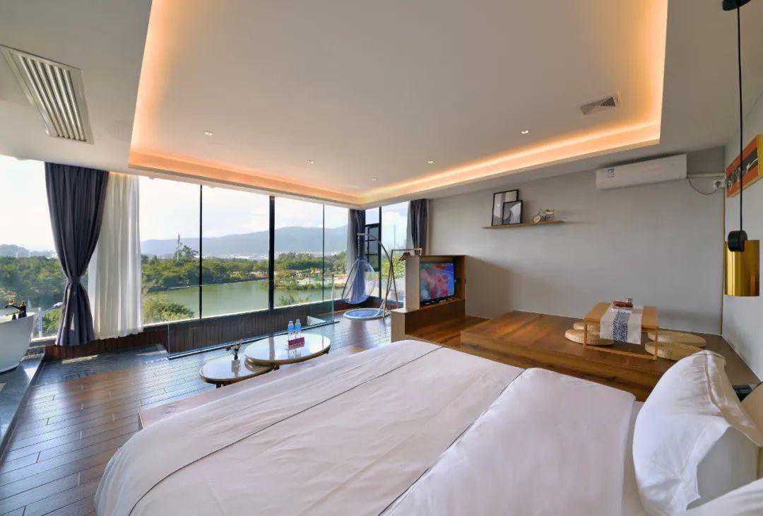 别致的客房景观与山湖景色完全融合。