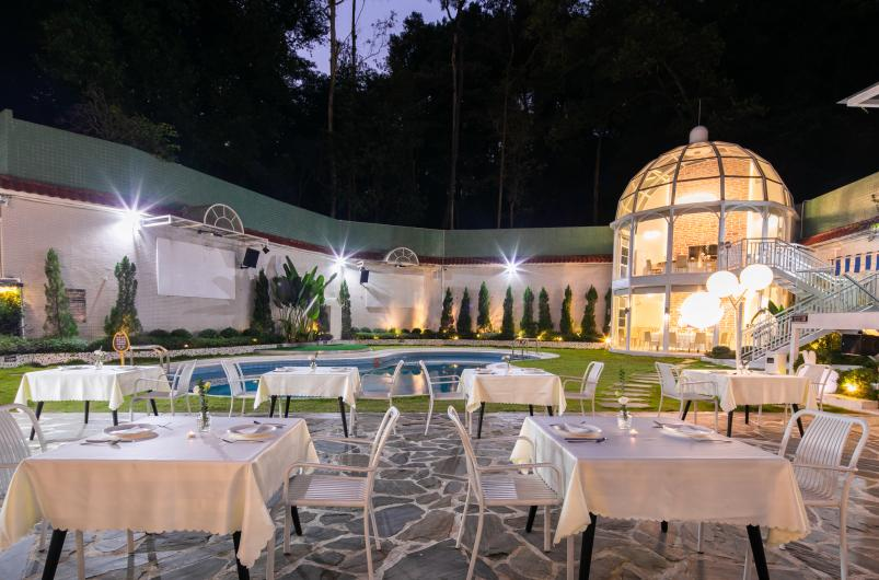 花园泳池边可同时容纳100多人就餐,