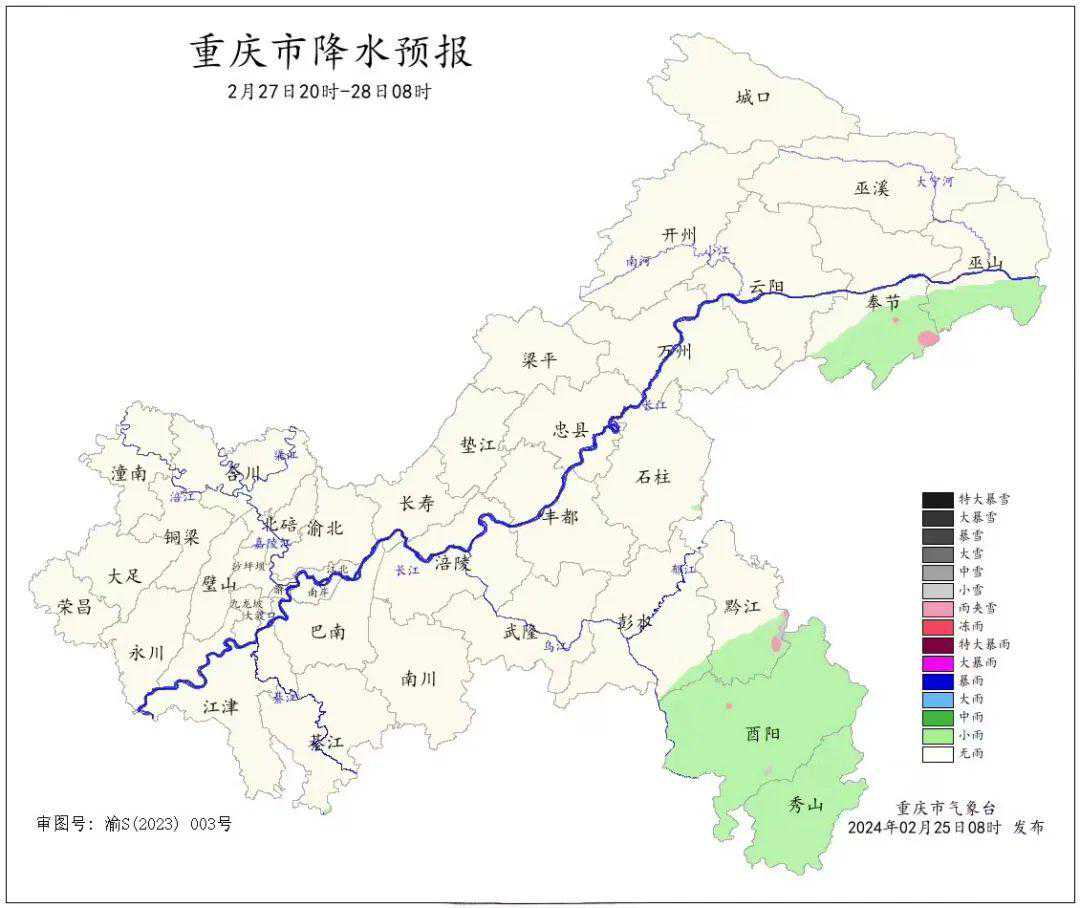 ▲2月29日20时—3月1日20时全市降水预报图。重庆市气象台供图