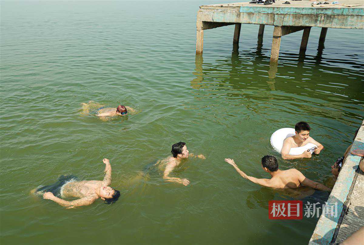 4月21日,武汉晴热如夏,东湖凌波门,游泳爱好者在东湖中寻找清爽