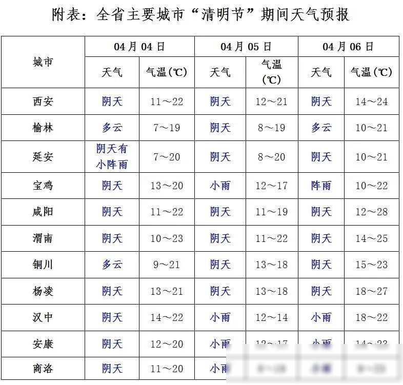 从气象预报来看,4月3日至6日,陕西将以阴天到多云天气为主,中南部地区还会有些许雨水。而且,5日的气温可能下降4℃左右,还会伴有3~4级的偏东风。这不禁让人担心,清明节出游计划会不会被雨水打乱呢?