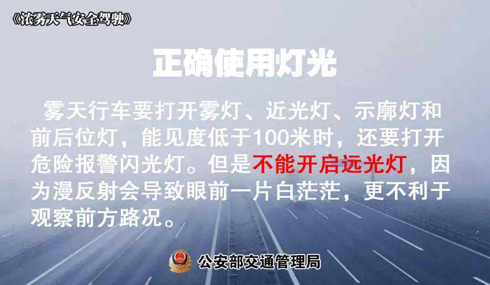 雾天多发于秋冬季节,这个季节气温低,车内容易起雾。应及时启用前后窗除雾、后视镜除雾等功能,并将出风口朝向前挡风玻璃,消除车内雾气。必要时还可以准备一些除雾剂,放在车上备用。