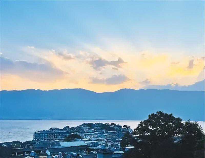 苍山洱海与蓝天白云映衬