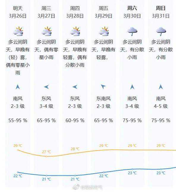 深圳气象台月气候趋势预测,深圳未来还有2次冷空气影响,分别出现在3月底至4月初、4月上旬末至中旬初,过程伴有7级左右大风,中雨或以上降水,最低气温16℃,体感清凉,月累计雨量100-120毫米。