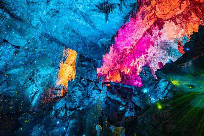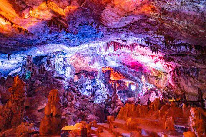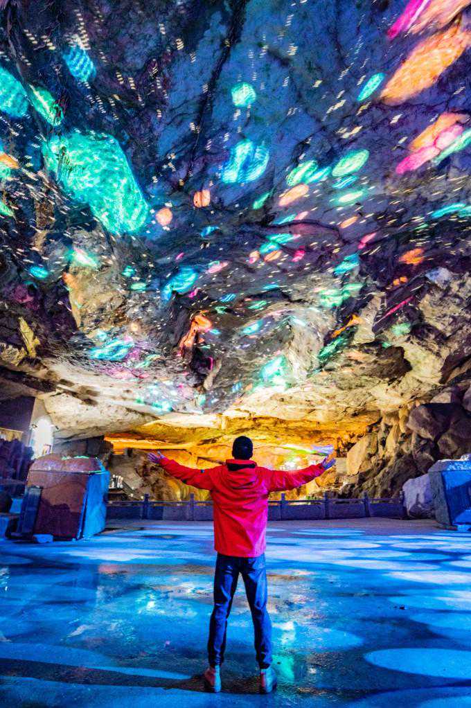 据说瑶琳仙境的溶洞灯光已经来到了5.0版本,不再是单一的打光,而是动静结合、虚实相生,甚至还运用声、光、电等特效穿插了故事情节,真的有种穿越到地心世界的感觉。细品一下,还真的趣味十足。时而“天崩地裂”、时而来到了“海底世界”,可以拍到一些很酷、很梦幻的照片。