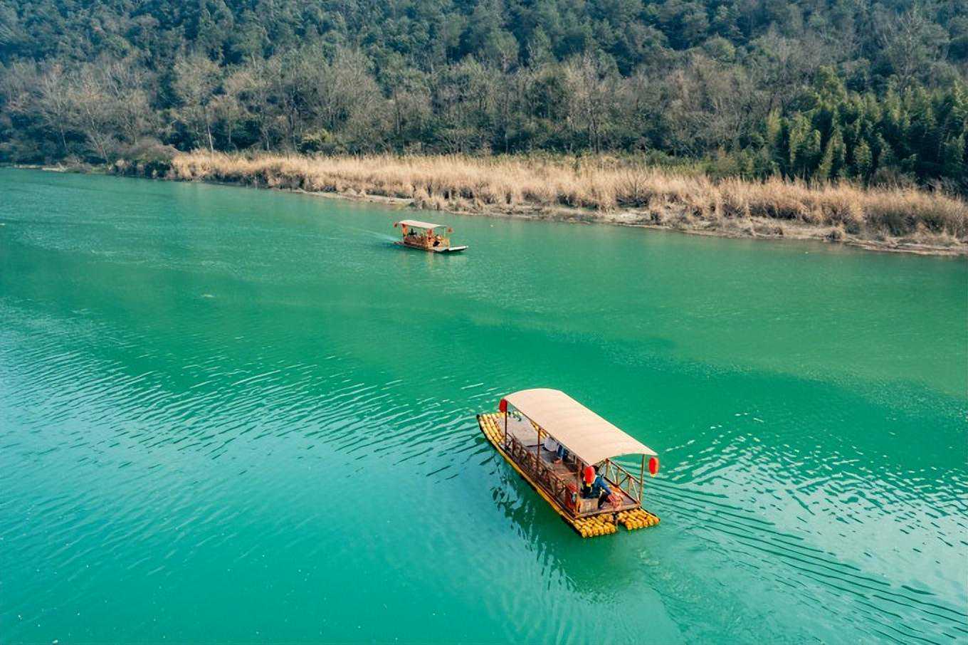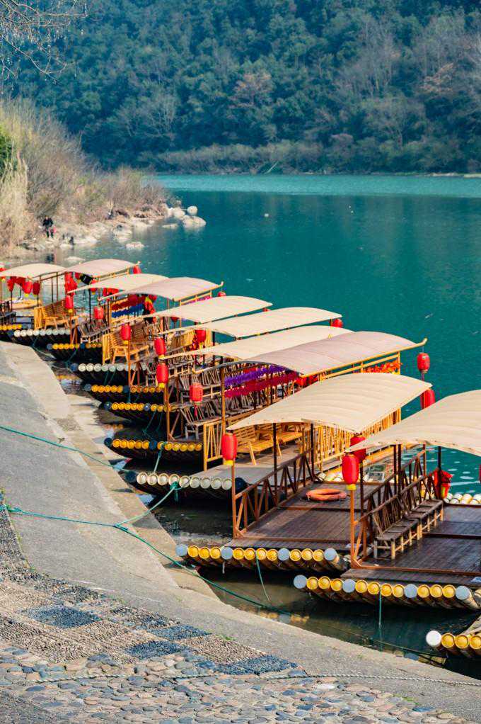 春江水已暖!最近桐庐的天气很好,春天气温回暖,就很适合乘坐竹筏在江上。这条竹筏漂流是沿明代大旅行家徐霞客放舟漂流的线路走的,全长2.5km。起点位于浙江桐庐县瑶琳镇毕浦村油车边,自驾过来的话就直接导航“天目溪漂流”即可。