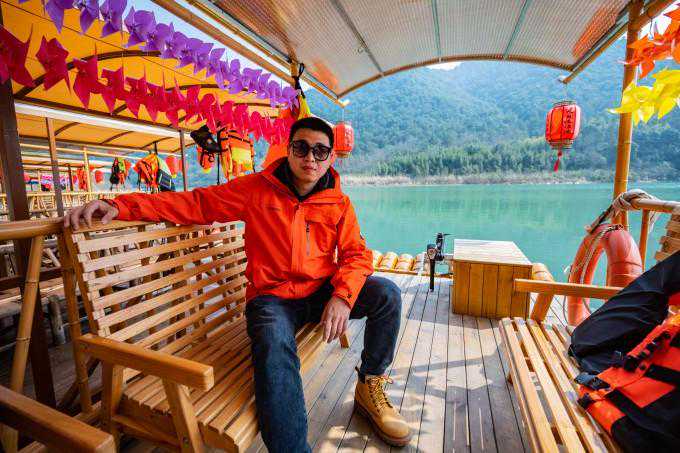 友情提示下,乘坐竹筏时不能下水游泳,天目溪的水深可以达到6米。因此在竹筏上也要穿好救生衣。如果想要拍摄不穿救生衣的照片,可以在竹筏靠岸以后再在竹筏上拍摄即可。