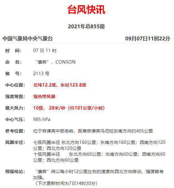 13号台风“康森”将于9月9日白天