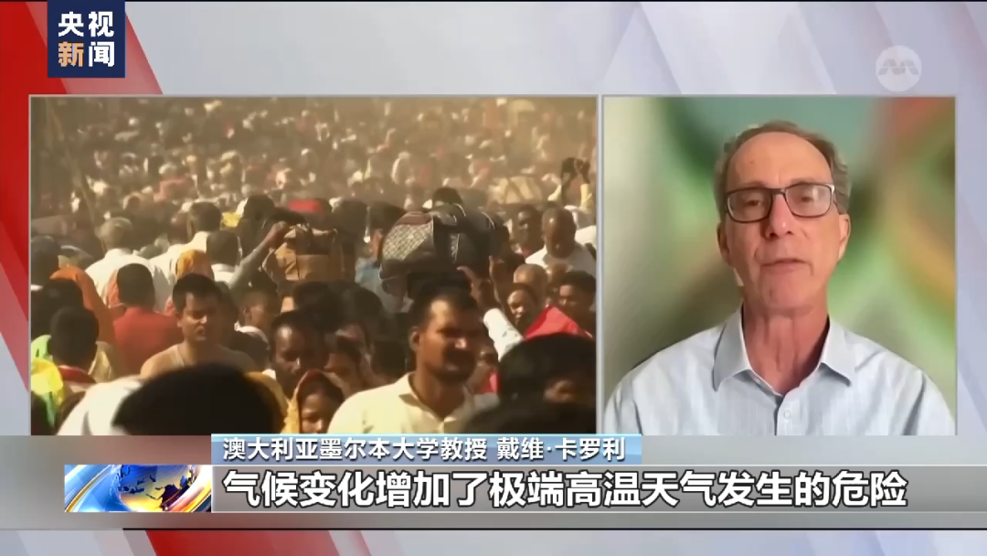 澳大利亚墨尔本大学教授戴维·卡罗利:气候变化增加了极端高温天气发生的危险,使得热浪侵袭更加频繁,更加剧烈。