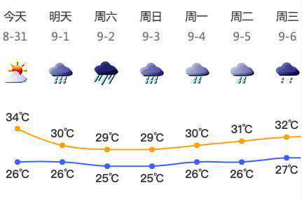 今天早上到中午,我市多云间晴天,天气炎热;气温26-34℃,中北部最高气温35℃或以上;北风4-5级,沿海、高地和海区阵风7-8级;相对湿度55%-80%。