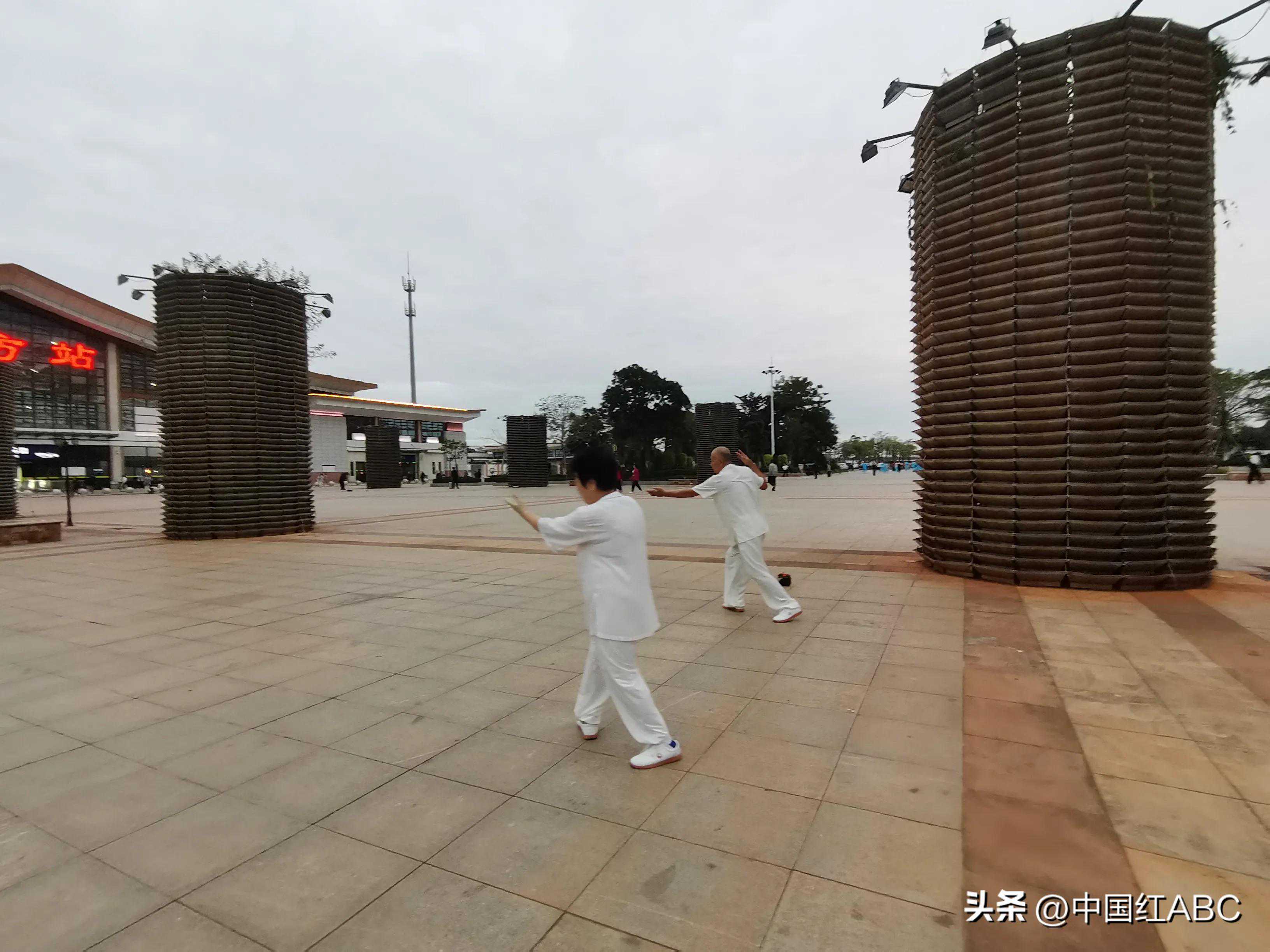 到了火车站广场,身上已微微出汗。广场上跳舞的,打太极的,甩鞭的,等等,活动的人不少。前几天低温时,广场上比较清静,因为来这里活动的人都是候鸟老人,当地人都忙于生计很少到高铁站广场休闲。