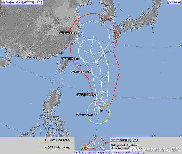 这个台风个头较大,发展潜力也大,后期至少是个强台风,不排除达到超强。总体是抛物线路径北上,给我国东部海区带来大风,舟山群岛9月1-2日可能有大风天气影响航运。9月3-4日台风还可能给东北带去风雨。