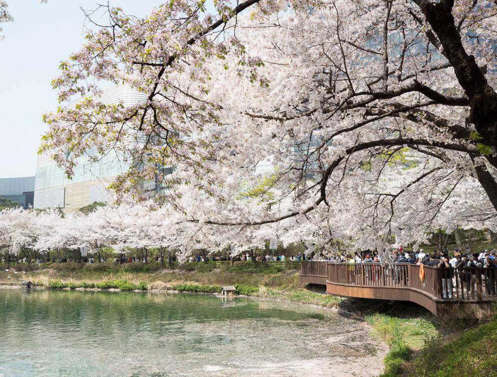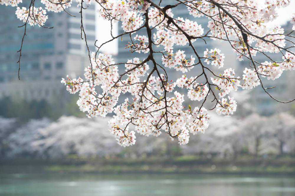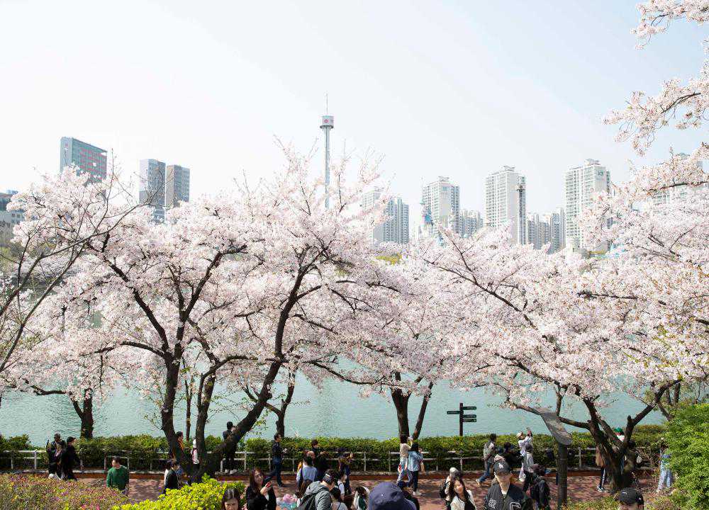 近日,韩国首尔天气转暖,樱花陆续开放。