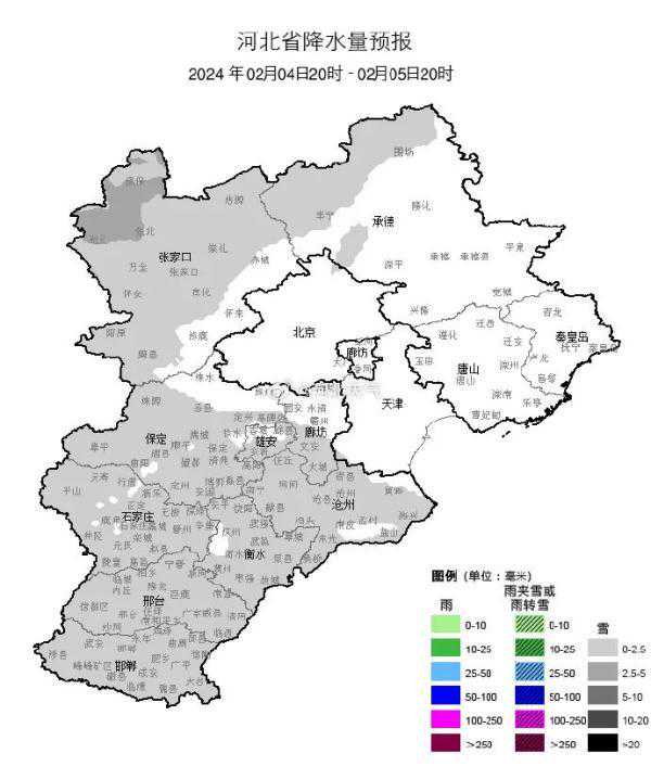 不过河北并非完全没有雪,未来几天,尤其是2月4日-5日,我省部分地区会迎来雨雪天气,这些地区的朋友出行还是要注意。