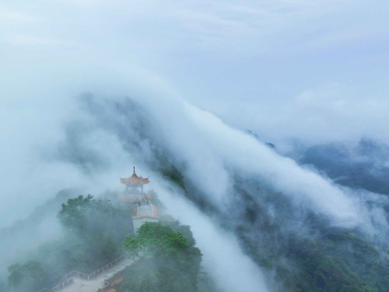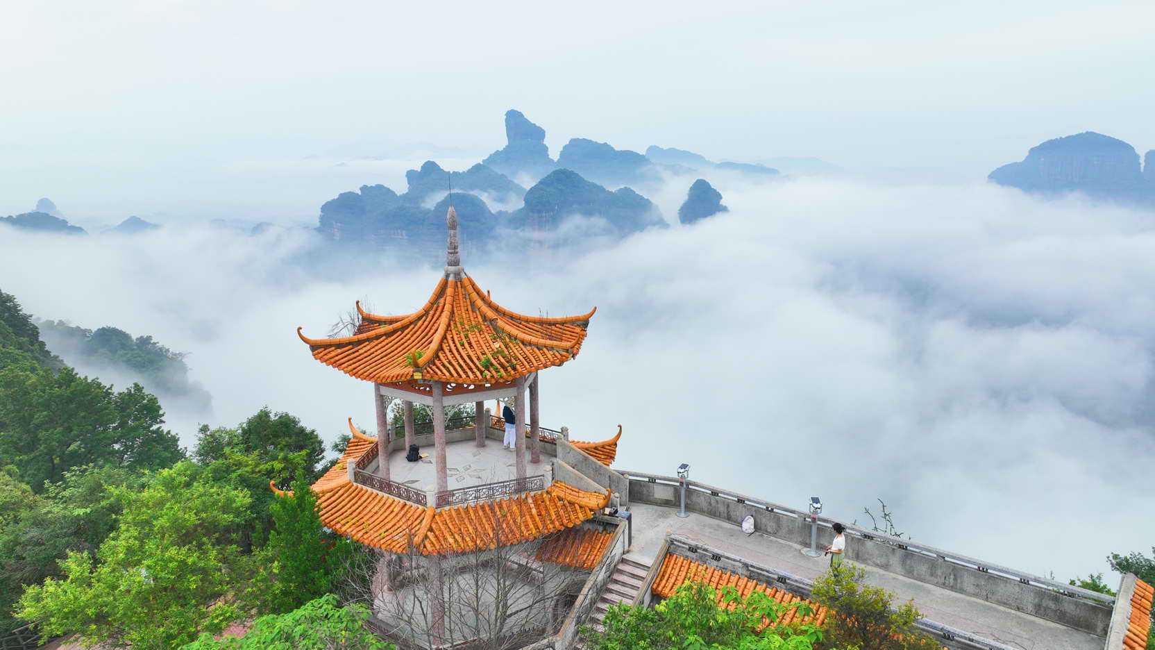 经历了持续几天的阴雨天气,加上近日来气温温差变化较大,世界自然遗产地广东韶关丹霞山5月14日再现大规模云海奇观,云海卷珠帘,丹崖争斗艳……一幅幅奇特美景缓缓展现在人们的视野之中。