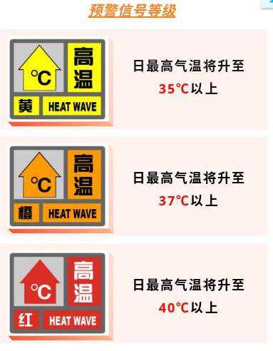 我国气象学上,一般把日最高气温达到35℃以上的天气,称之为高温天气。同时,把连续数天(三天以上)日最高气温都超过35℃的高温天气过程称为高温热浪(也称为高温酷暑)天气。