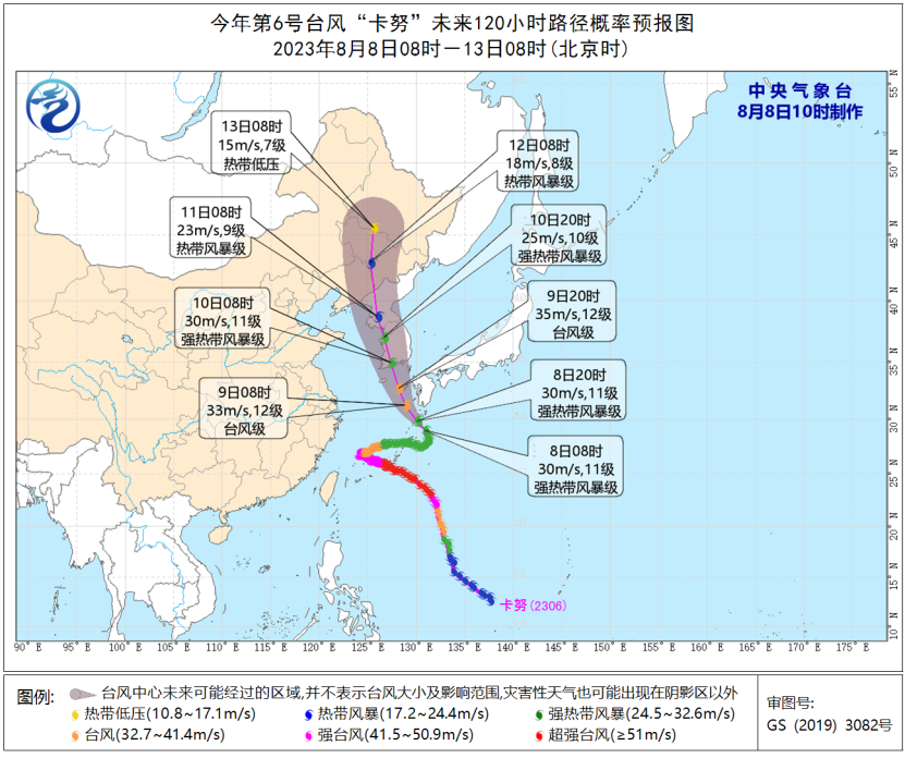 中央气象台8月8日10时继续发布台风蓝色预警,预计“卡努”将以每小时10公里左右的速度向西北方向移动,强度将有所增强,并逐渐向朝鲜半岛南部沿海靠近。
