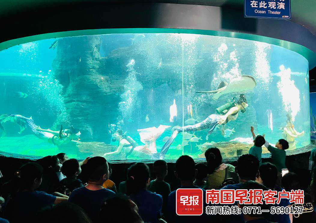 当天上午11时许,一场为孩子们精心准备的海底美人鱼表演压轴登场。4名工作人员扮演的“美人鱼”在大洋缸里畅游、翻滚和绕圈,向孩子们比心,并送上“深情一吻”,让“小冻梨”们宛若置身奇幻世界。