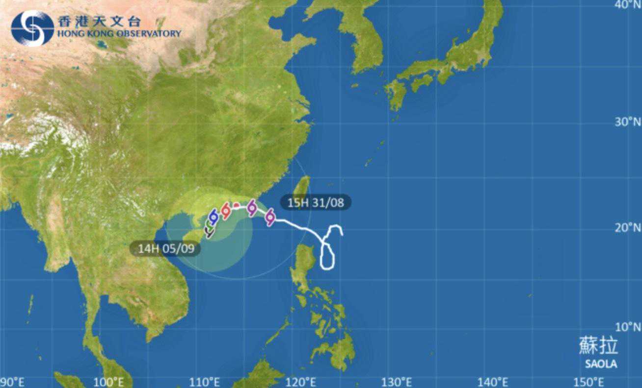 香港天文台今日(1日)凌晨2时40分发出八号热带气旋警告信号,并会在今日大部分时间维持。香港天文台预测,“苏拉”会在今晚至明早相当接近香港,在香港以南100公里内掠过。香港天文台会视乎本地风力变化,评估是否需要在黄昏前后发出更高热带气旋警告信号。