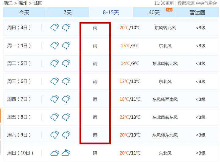 温度是上来了,但是太阳公公却跑了。就目前的天气预报,自除夕起,苍南清一色的雨雨雨!
