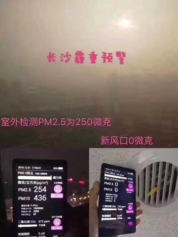 但是在这位使用远大新风机的同学家里,新风口的浓度降到了0!