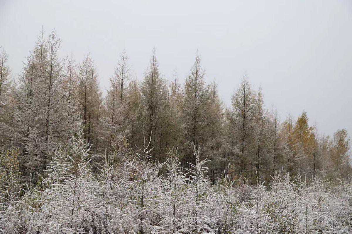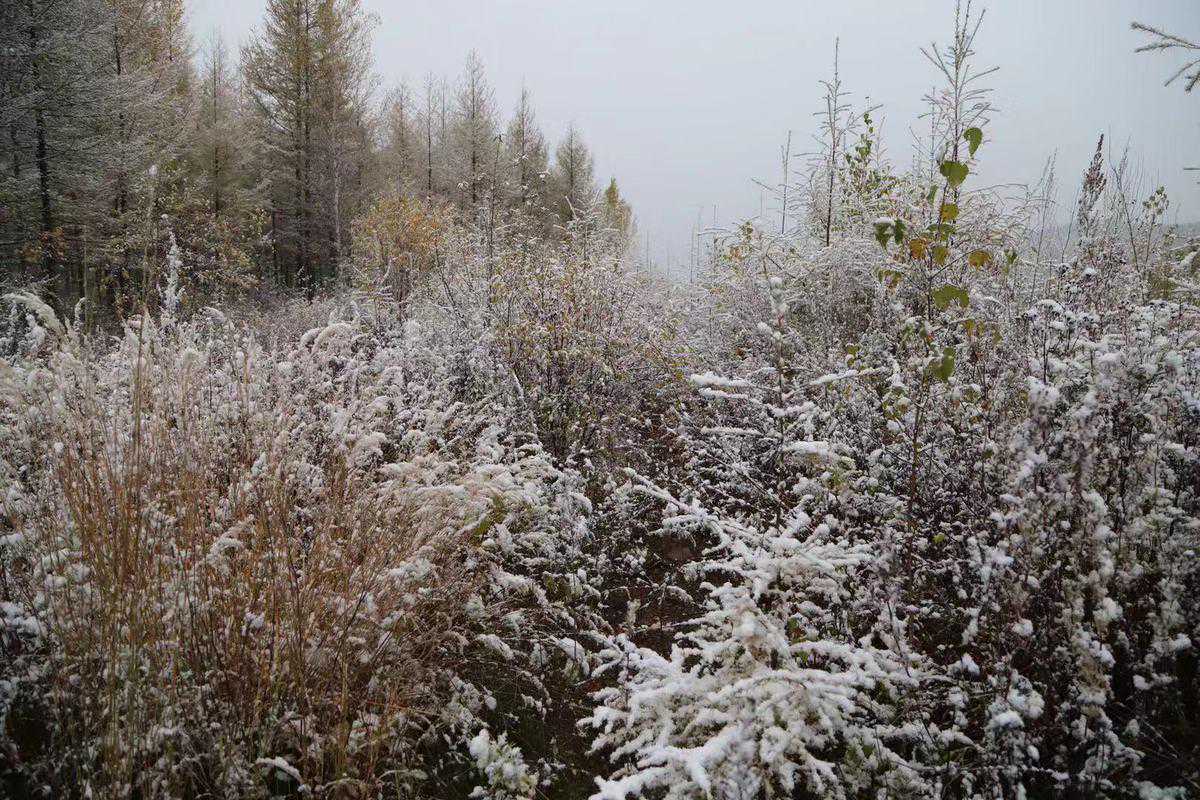 受一股强冷空气影响,9月15日15时,黑龙江省漠河市多地降下入秋后的首场降雪。飘飘洒洒的鹅毛大雪从天而降,降雪伴随降温,不一会儿整个世界被白雪覆盖,叶子上和松针上堆满可爱洁白的雪球,满眼都是冬天的美景。眼下的漠河正值深秋时节,森林里的五花山色秋意正浓,突来的降雪让金黄色的山坡披上了雪白的新衣,远远望去雪中的森林宛如童话世界。别样的风景吸引络绎不绝的的市民和游客在大雪中拍照留念,记录这一份秋日里的惊喜。