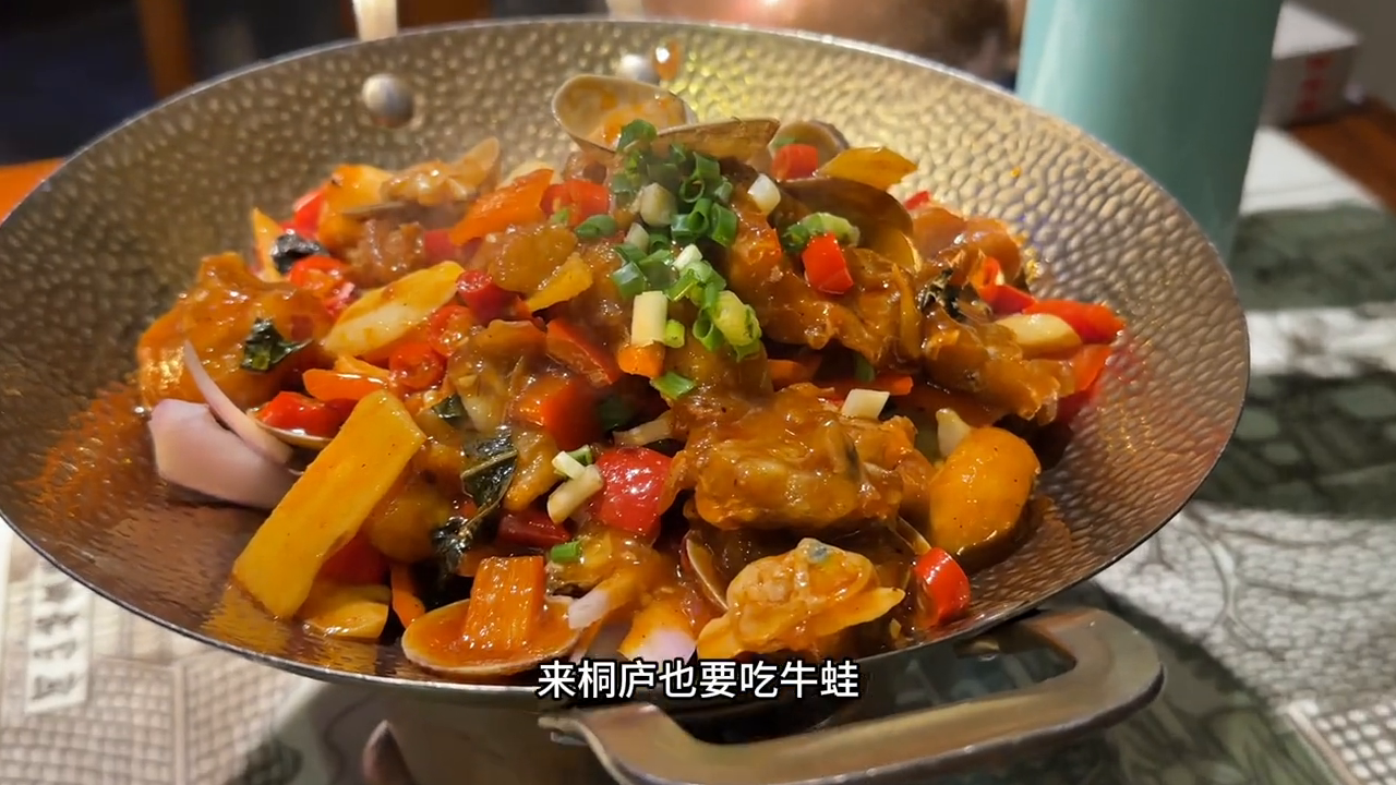 晚饭来吃的是很有名的一味大院,这个菜怎么说?这个羹真的超级的好吃,不愧是招牌,我跟周老师两个人连吃三碗。来桐庐也要吃牛蛙,可惜以后都不会再吃。这家店的菜都很好吃,很下饭,牛肉煮的也很烂。总的来说是一个没有踩雷的饭店,谁能想到肥牛是店家送的。