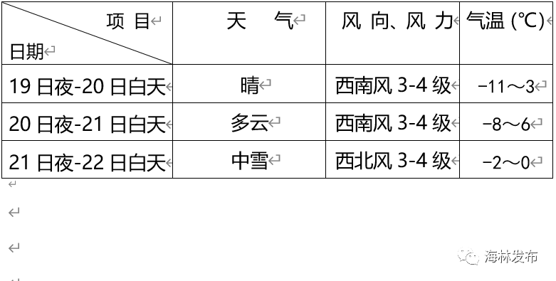 海林市未来三天天气预报