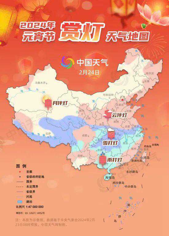 今天我省大部云量较多,云下赏灯更添诗意,夜间寒意十足,外出赏灯注意保暖。