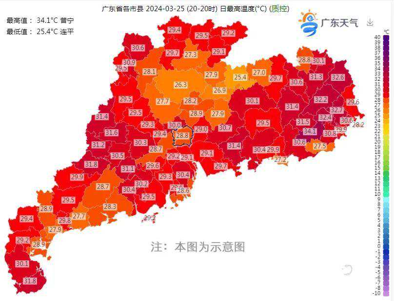 气温方面,昨天广东大部地区依然暖热“控场”,午后多地的最高气温均达到30℃左右,加上湿度较高,不少网友表示天气有些“粘”人湿热。