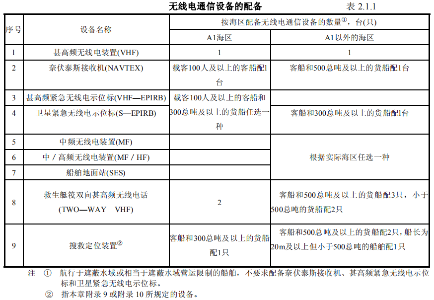 了解了我国沿海的营运海区分布情况,那么新的问题又出现了,不同的营运海区对船舶无线电设备配备有什么要求?《2011国内航行海船法定检验规则》中对不同营运海区的无线电设备配备有详细的规定:
