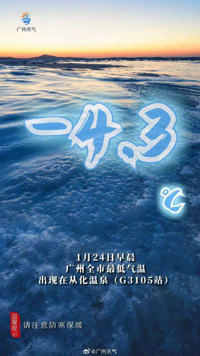 今晨,广州北部山区最低气温-4.3~1℃,其余地区2~5℃。其中从化区温泉镇G3105自动站录得全市最低气温-4.3℃,为该站建站以来的历史第三低。