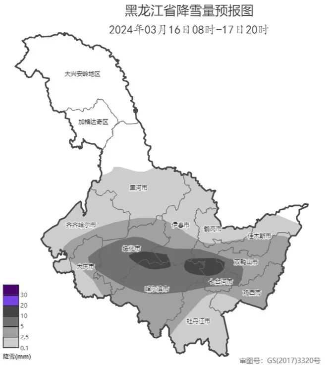 图2黑龙江省3月16日08时-17日20时累计降雪量