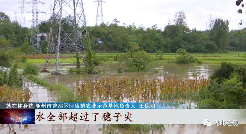 曾都区何店镇农业示范基地负责人王保明表示:“雨下得非常大,三个基地试验田全部淹了,水全部超过了穗子尖,试验田几个村的交通已经中断了。”