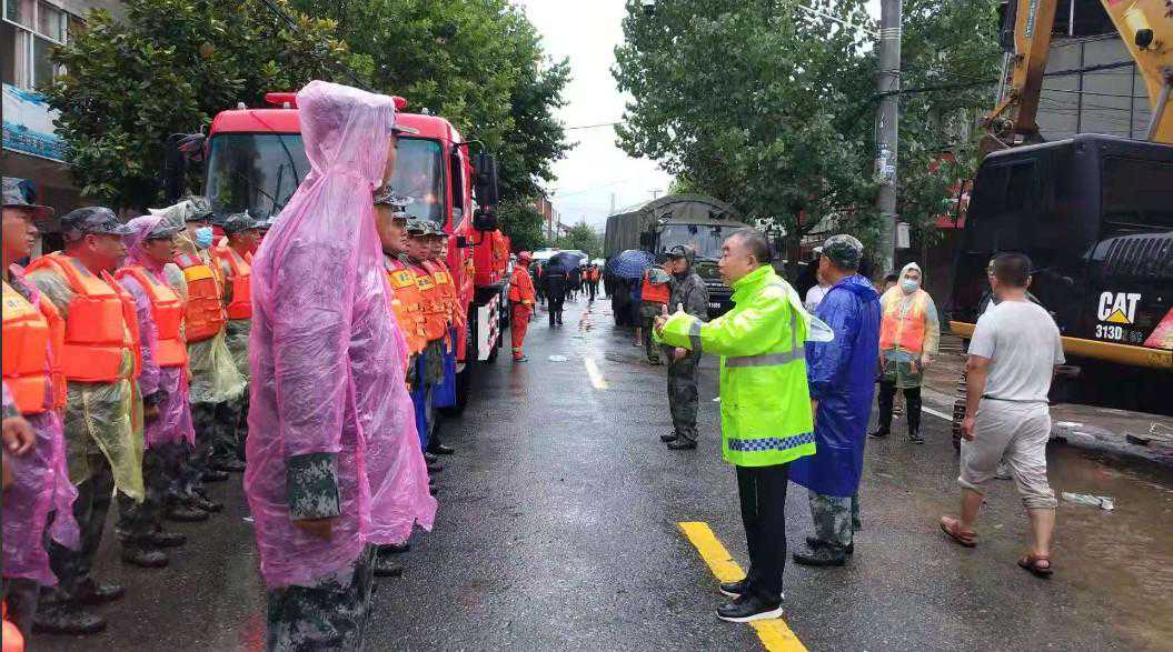 消防救援队员驾驶着冲锋舟,沿临街住房依次搜寻,当发现有被困人员时,消防队员迅速淌水进入小区,将被困人员背至冲锋舟上,转移到安全地带。