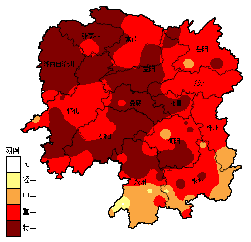 全省121个县市区气象干旱维持,119个县市区达到中旱以上等级,影响范围占全省总面积的97.7%,108个县市区达到重旱以上等级,影响范围占全省总面积的87.3%,50个县市区达到特旱等级,影响范围占全省总面积的43%。