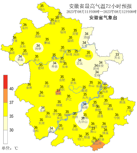 预计未来三天阜南县的洪河桥、苗集、田集等大部分乡镇最高气温将升至35℃以上,局部地区最高气温可达37℃,请注意防暑降温。