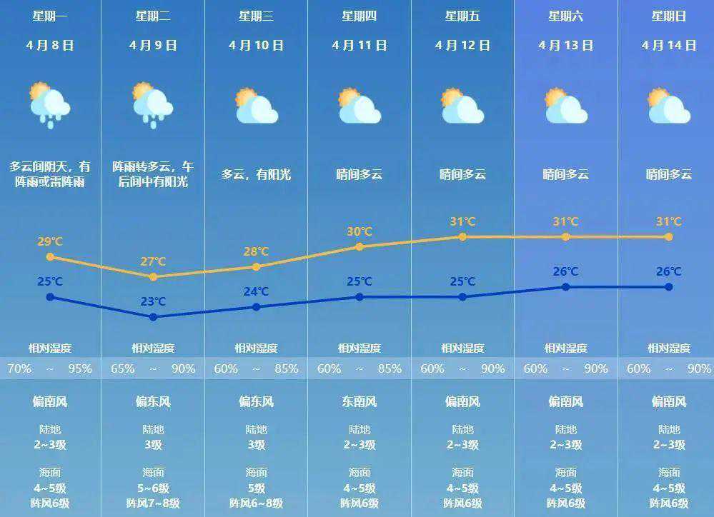 市气象台预计,我市今明两天仍多云为主,有阵雨,本周中期阳光会增多。9日起降雨减少,阳光阵雨相伴,受偏东气流影响,早晚体感较凉爽;预计10-13日,我市天气转晴好,气温逐日上升。