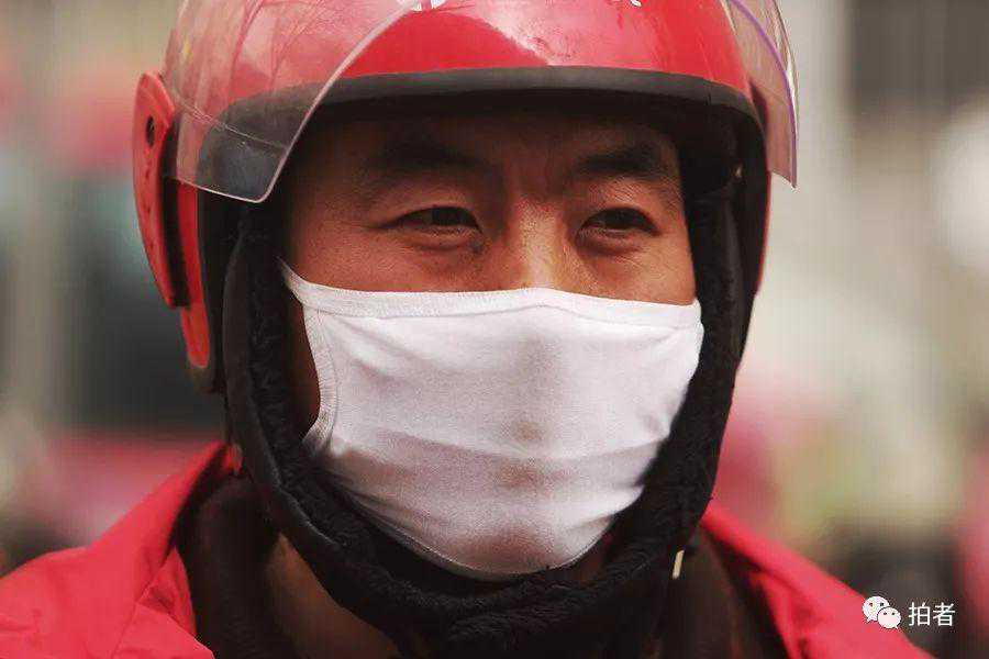 出行的市民都戴着口罩,一位早晨7点出门工作的快递员,白色的口罩上已经有了明显的污渍。