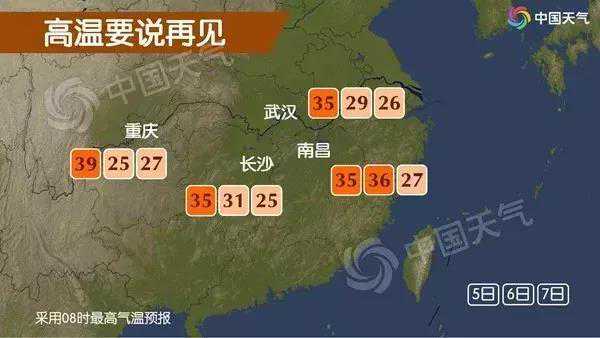 江淮南部、江南北部和西部,华南北部、西南地区东部一带,将是降温的重心,降幅大多可达6-10℃,很多地方的气温会不足25℃,